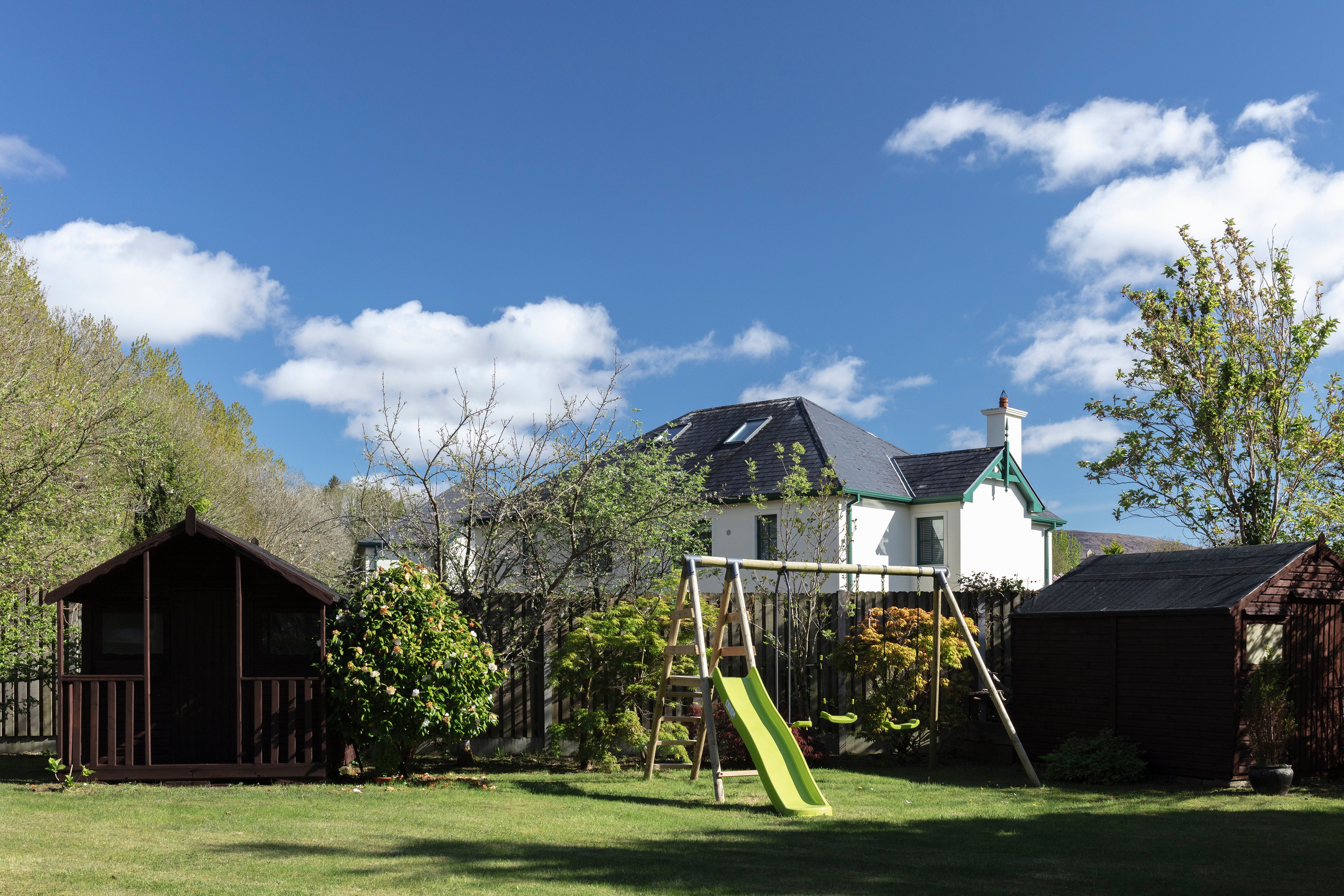A small sitting area next to the dining area leads guests through French doors to the spacious furnished patio outside. The property boasts a large secluded back garden with a swing set and a wide selection of children's toys, perfect for family enjoyment.